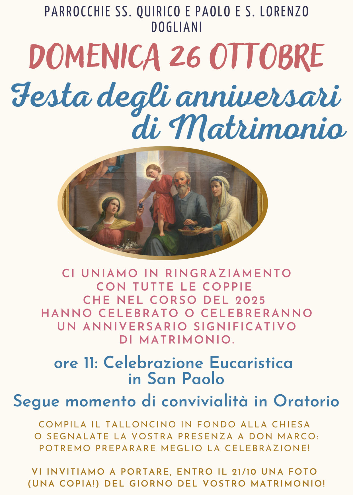 DOMENICA 5 GIUGNO - FESTA DEGLI ANNIVERSARI DI MATRIMONIO