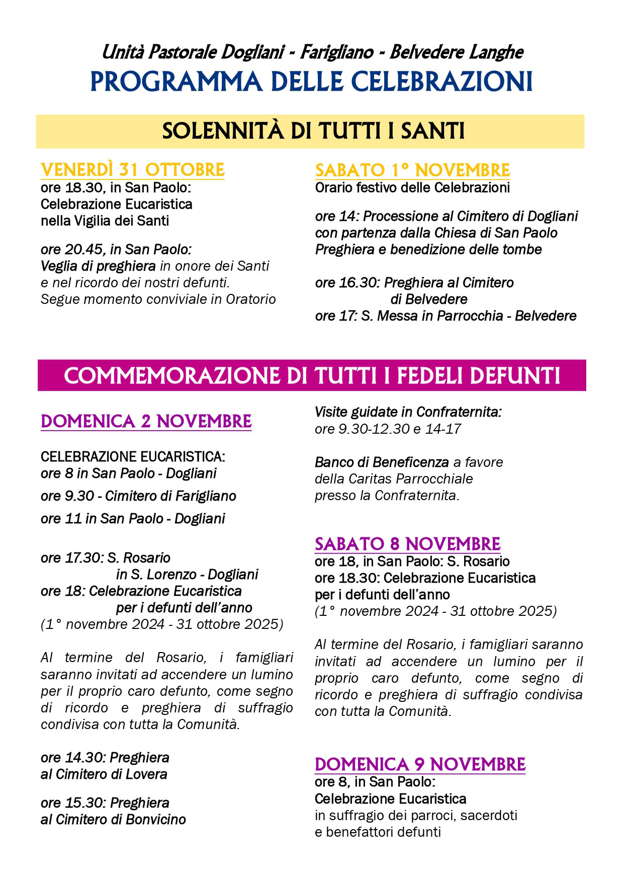La Veglia Funebre e la Messa Esequiale saranno trasmesse in streaming sul canale YouTube della Parrocchia di Dogliani